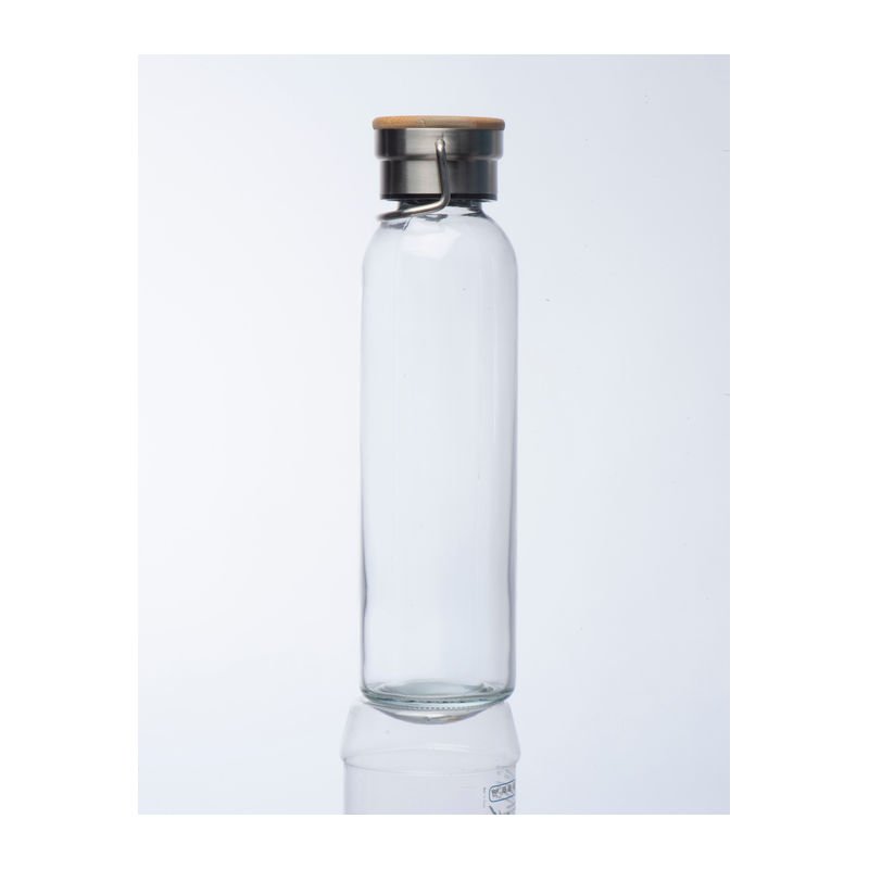 Sklenená fľaša na pitie s neoprénovým puzdrom, vrchnák z nehrdzavejúcej ocele s bambusovým vrchom, ucho na prenášanie a objem 600 ml.