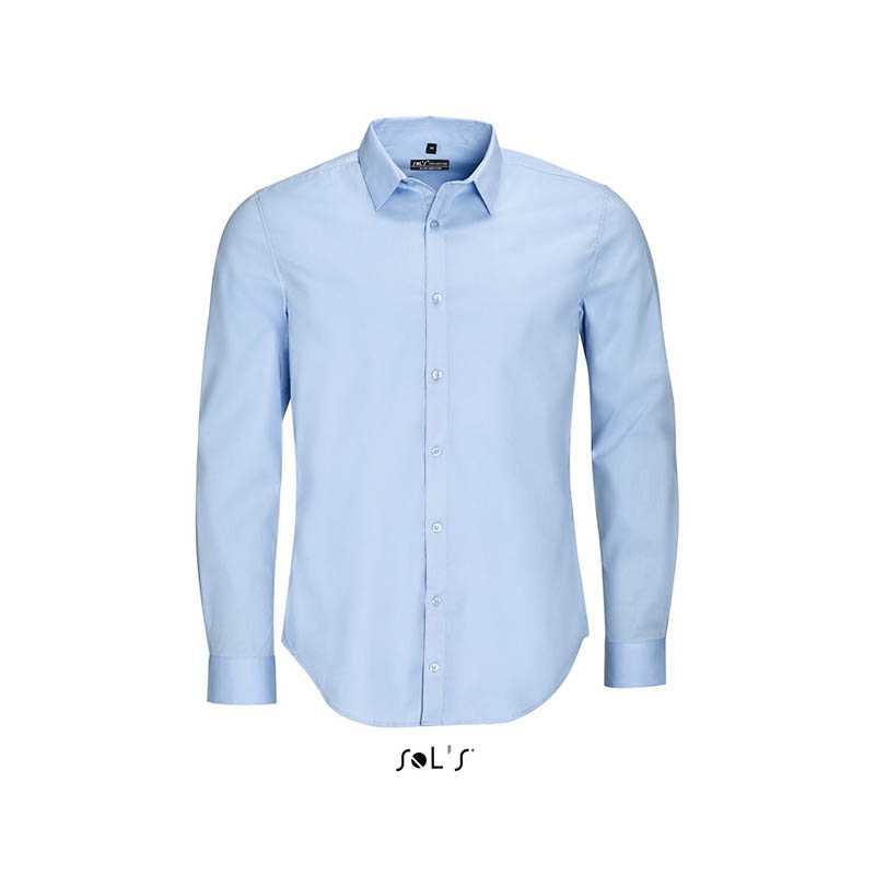 Stretch poplin, - 2-button cut-away collar, - Cross stitched mother-of-pearl effect buttons, - 2-button adjustable cuffs, a. Angular cuffs & square-shaped gauntlets, b. Additional cufflink buttonholes, - Short modern back yoke, - Inside lap seams for perfect finishing, - Horizontal last buttonhole, - Square-shaped bottom hem side reinforcement, - Shorter length – can be worn untucked, - Curved bottom hem, - Darts at back panel, Quality, Out: Poplin, In: Poplin, 97% combed cotton - 3% elastane, 135g/m2, Professional informations, 1 pc/pack & 10 pcs/carton, Medium Fit. BK13 Značka : B&C . Materiál : 97% bavlna - 3% elastane, 135g/m2