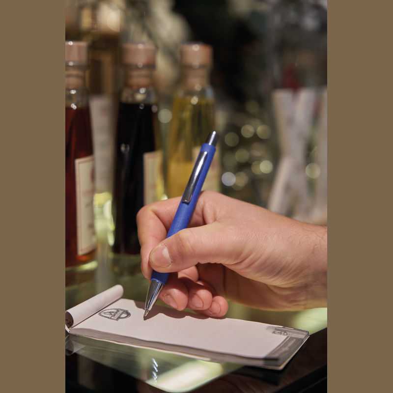 Kuličkové pero TIKO bylo vyrobeno s úmyslem znovu použít suroviny. Jeho tělo je vyrobeno z recyklovaného papíru a špičky jsou vyrobeny z plastu s příměsí přírodní slámy, což omezuje množství plastu potřebného pro výrobu. Jednoduchý, nadčasový vzor. Kuličkové pero. Náplň typu X20 modrá.