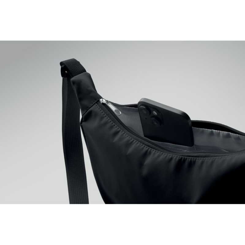 Brašna crossbody ve tvaru půlměsíce z materiálu 400D Oxford s podšívkou z 210D RPET. Jedna hlavní kapsa na zip a dvě vnitřní kapsy.