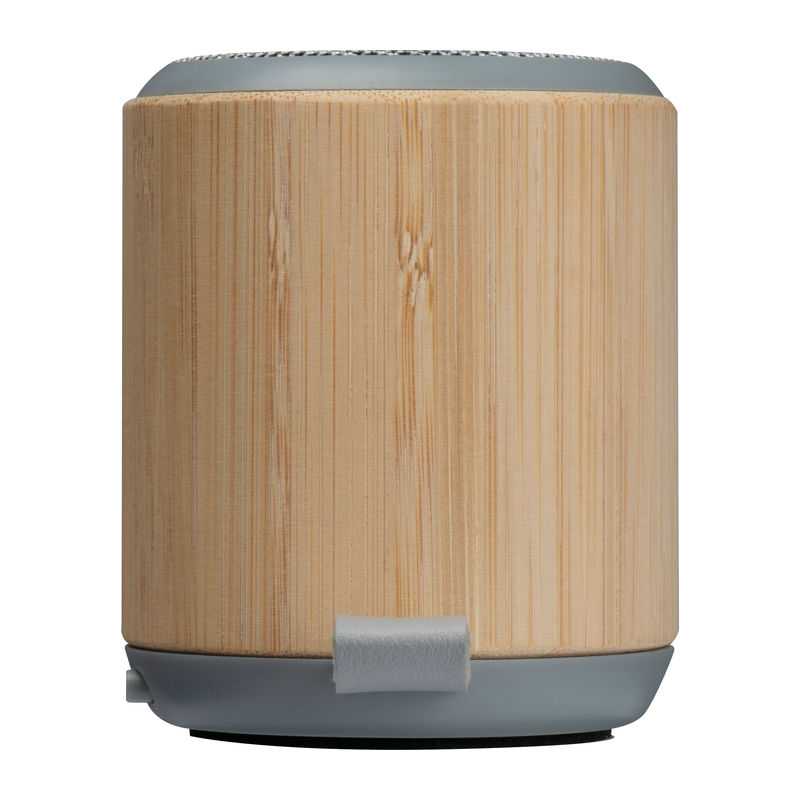 Bluetooth reproduktor v puzdre z recyklovaného ABS plastu a bambusu s viacfarebným LED svetlom na spodnej strane. S popruhom a vstavanou dobíjacou batériou. Vrátane USB nabíjacieho kábla.