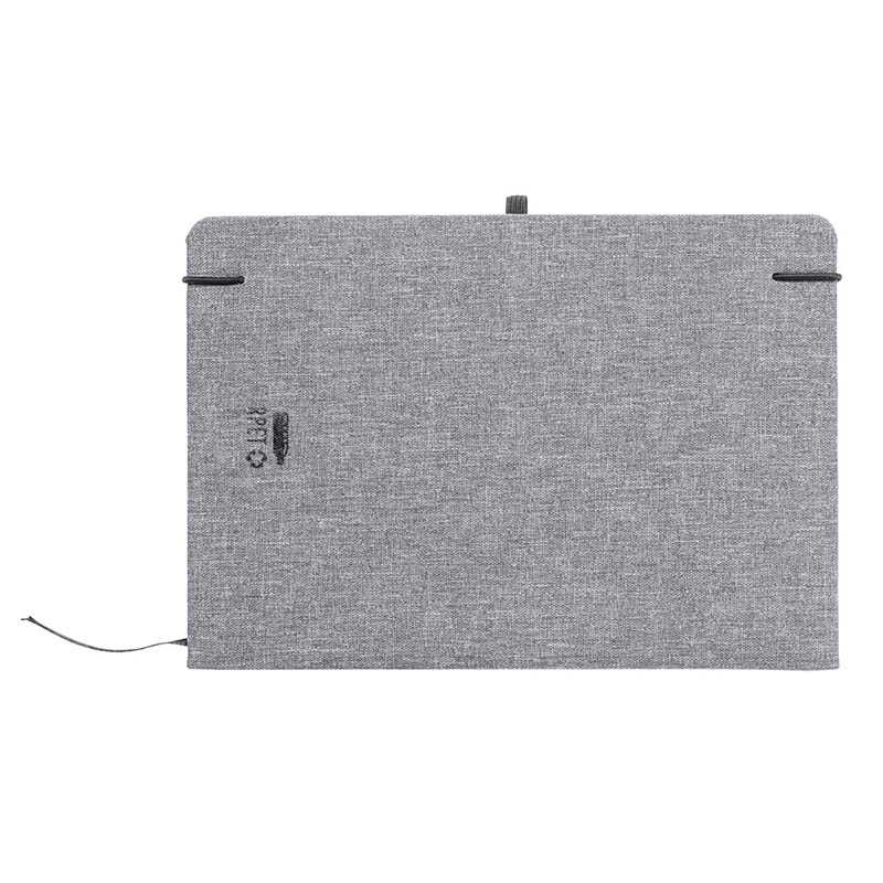 Zápisník potiahnutý polyesterom 600D RPET so 100 linajkovými listami, záložkou a gumičkou. Veľkosť A5.