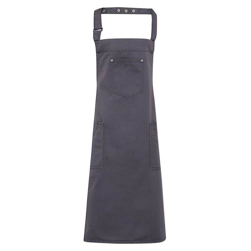 Horné vrecko v strede.Popruh okolo krku s prackou a nastaviteľným zapínaním na patentky.Horné vrecko: šírka 13 cm, hĺbka 16 cm.Spodné vrecká: šírka 18 cm, hĺbka 20 cm.Strih sa zhoduje s PR133 ‘Chino’ Zástera do pása.