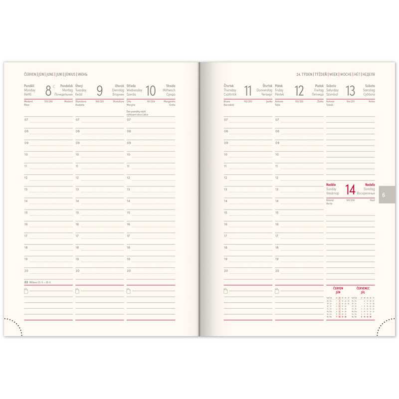 • mapa Českej a Slovenskej republiky • miesto pre osobné údaje • textilná záložka • perforované rožky • priestor na poznámkyRozsah: 144 strán. Rozmer: 15 x 21 x 2 cm. Hmotnosť: 0,28. Papier: 90 g/m2 krémový papier. Väzba: tuhá knižná. Kalendárium: 6 jazyčné (CZ, SK, GB, DE, HU, RU) .
