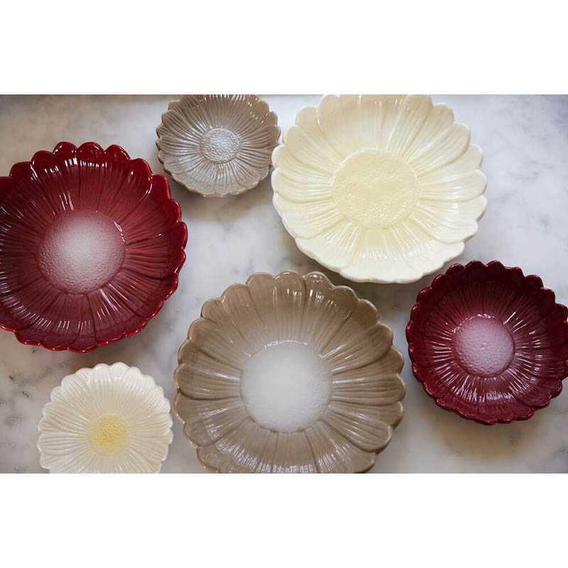 We gather flowers but in a different structure and material. The Dagny series is inspired by the beautiful leaves of the daisy and becomes a lovely addition to the table, whether in its simplicity or as a serving plate. Dagny is available in various color combinations borrowed from nature and in several sizes. They make a delightful complement to everyday dinnerware. The beautiful deep red color sets the tone for the season and makes it a perfect serving platter. Can be used in microwave and oven. Designed by Studio Sagaform. Comes in a classic gift box. Material: Dolomite Care instructions: Dishwasher Safe; oven safe, microwave safe, food safe Size: o20x5cm