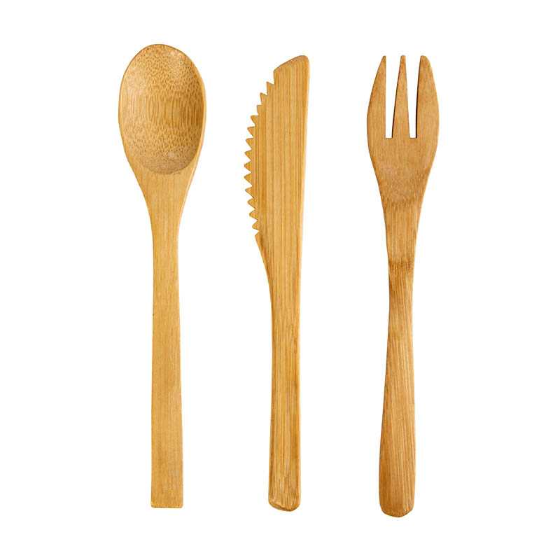 Bamboo cutlery set in cotton pouch