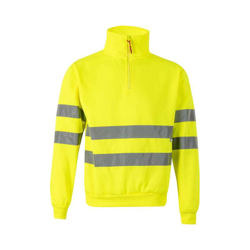 Half-zip turtleneck sweatshirt Reflective tape on torso and sleeves Ribbed cuffs and waistband Antipilling treatment
