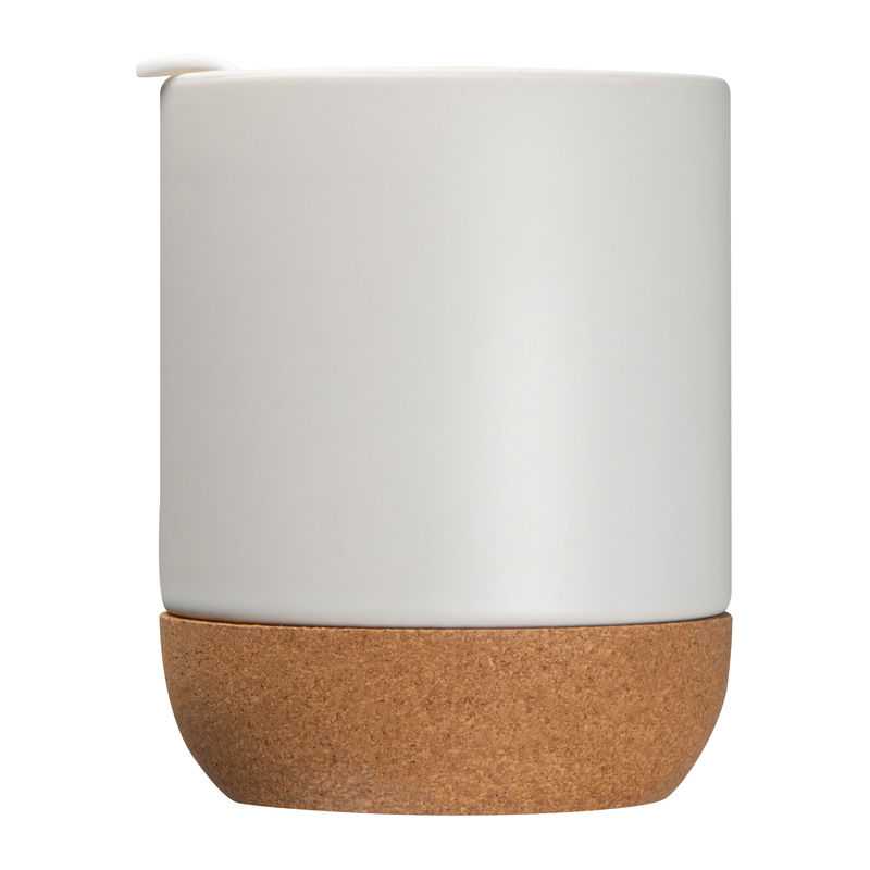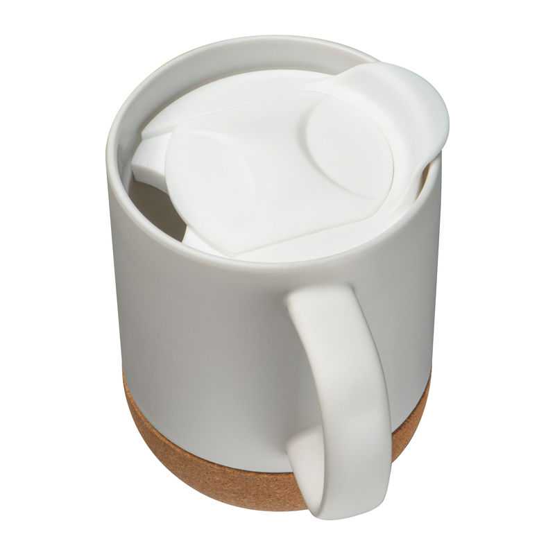 Sublimačný hrnček s vekom a odnímateľným korkovým spodkom, s objemom 300 ml.