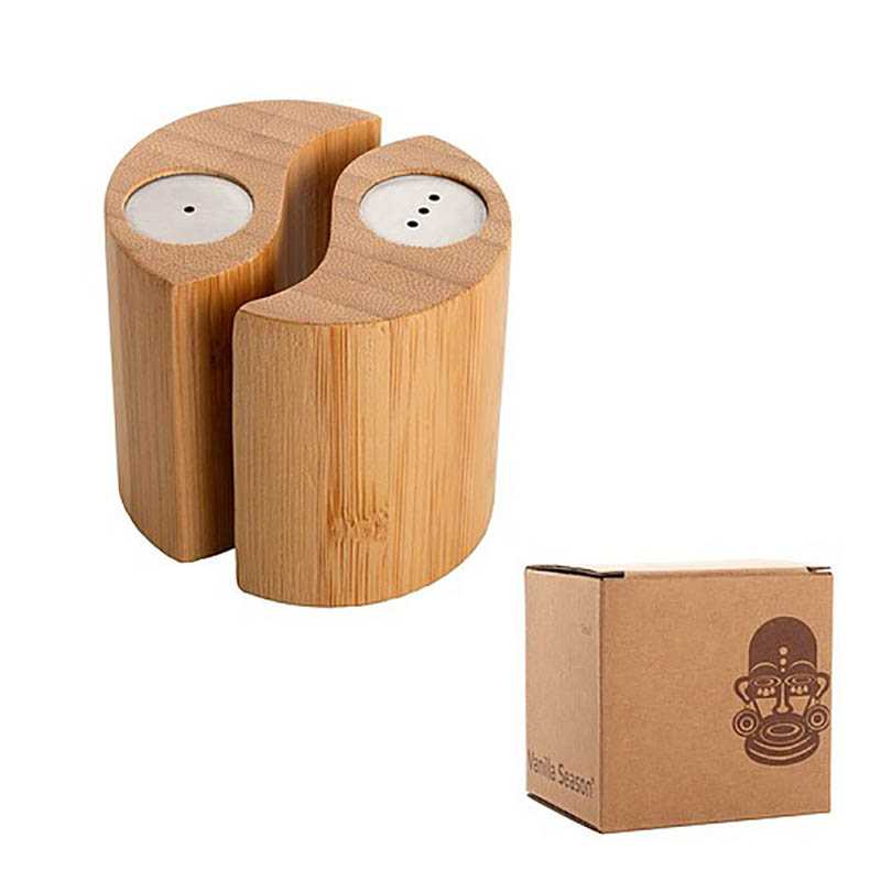 Elegantné koreničky na soľ a korenie, ktoré do seba zapadajú ako „jin a jang“ budú skvelým doplnkom v každej kuchyni. Koreničky sú vyrobené z bambusu. Balené v darčekovej krabičke Vanilla Season. Odporúčaná technológia tlače: tampontlač T2. Maximálna veľkosť tlače: 25 × 25 mm. Rozmery: koreničky O 7 × 7 cm, balenie 7,5 × 7,5 × 7,5 cm. Uhlíková stopa: gCO2 e365.