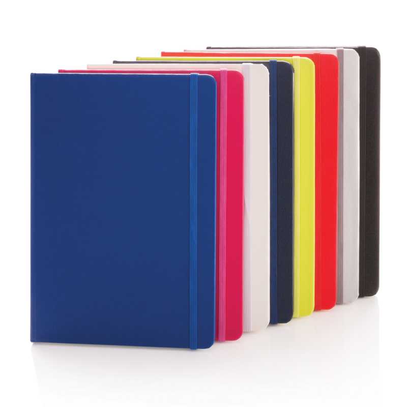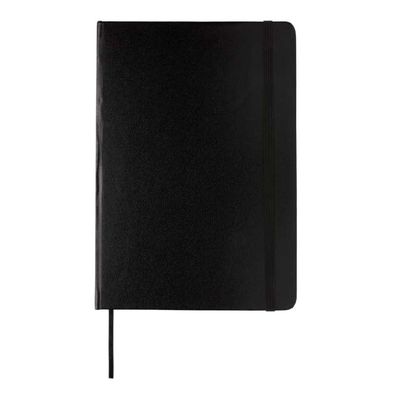 Linajkovaný základný zápisník A5 s tvrdým obalom, elastickým uzáverom a záložkovou stuhou. 144 strán 70 g/m2 vnútri. Krémovo sfarbené strany.