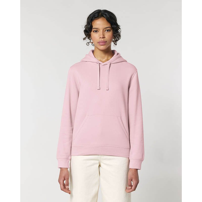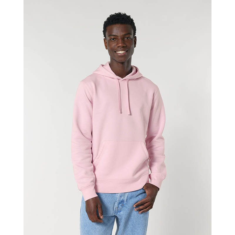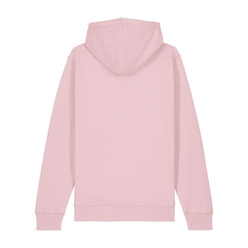 85 % organická bavlna/15 % recyklovaný polyester.Prstencovo spriadaná česaná bavlna.Rovný strih.3-vrstvový kartáčovaný flís, LSF (Low Shrinkage Fleece: predzrazený flís).1/2 kruhu vzadu.Klokanie vrecko.1 x 1 rebrovaný spodný okraj a manžety.Dvojité prešívanie na manžetách, prieramkoch, spodnom okraji a 1/2 kruhu.Podlepený výstrih vnútri na zadnej strane.Podšitá kapucňa z hlavného materiálu so zaväzovaním na šnúrku.Okrúhla šnúrka s recyklovanými kovovými koncovkami a očkami.