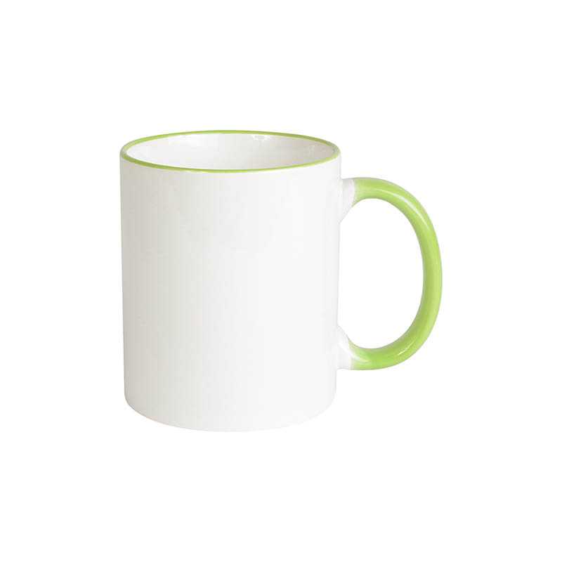 White grade A ceramic mug with coloured handle and edge suitable for dishwashers and microwaves, white box 0,32 L. For sublimation printing