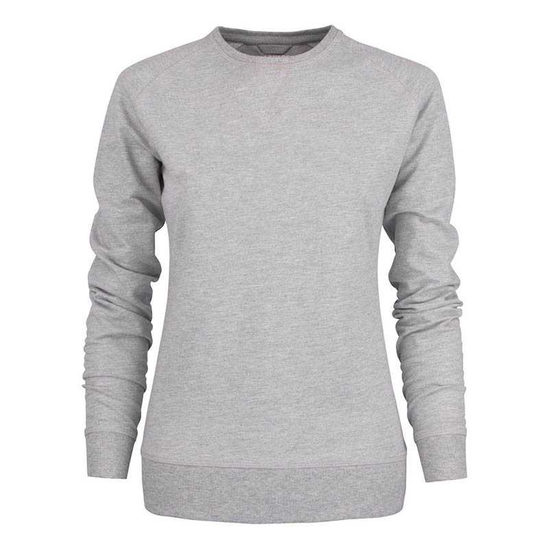 Sweatshirt with round neck and brushed lining. 2x2 ribbing on the collar edge, end of sleeves and bottom hem. Decorative seams in overlock knit set in a tone-in-tone feature. Ladies fit.