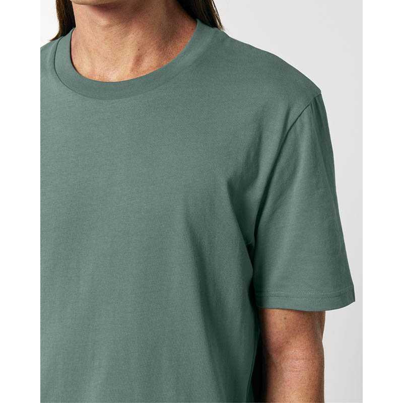 Modern fit T-shirt with reinforcement at shoulder seams and double-stitchings around neck. Elastane in neck rib. Neck rib with four layers for better stability. In the inner left side seam a pocket is provided for sewing in a laundry chip. Delivered in a biobased, compostable bag. Oeko-Tex certified. Colors: 100 white,120 grey melange, 400 red, 600 navy, 616 dark navy, 632 ocean blue, 728 fresh green, 900 black, 935 steel grey 60% organic cotton, 40% recycled polyester, (120 grey melange: 85% organic cotton, 15% viscose) 180 g/m2 XS-5XL