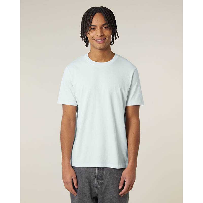 Modern fit T-shirt with reinforcement at shoulder seams and double-stitchings around neck. Elastane in neck rib. Neck rib with four layers for better stability. In the inner left side seam a pocket is provided for sewing in a laundry chip. Delivered in a biobased, compostable bag. Oeko-Tex certified. Colors: 100 white,120 grey melange, 400 red, 600 navy, 616 dark navy, 632 ocean blue, 728 fresh green, 900 black, 935 steel grey 60% organic cotton, 40% recycled polyester, (120 grey melange: 85% organic cotton, 15% viscose) 180 g/m2 XS-XXL
