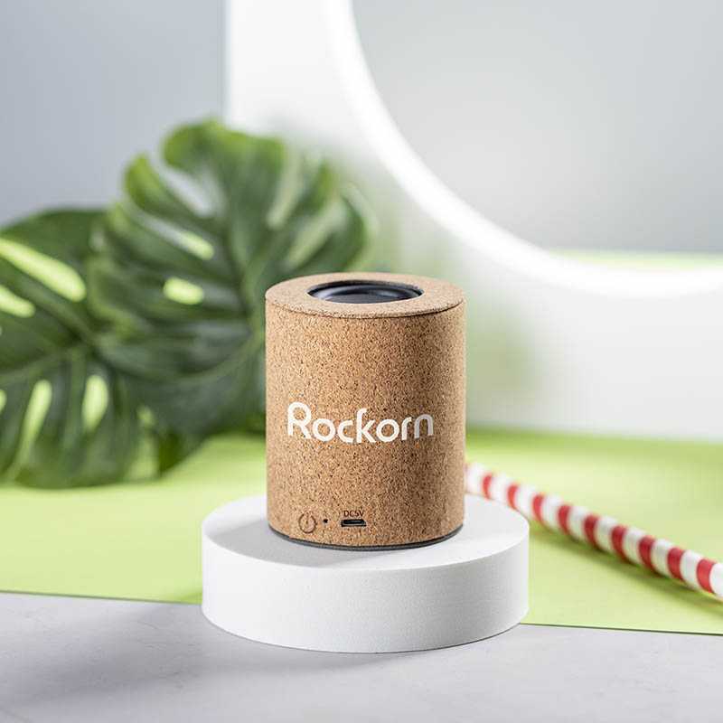 NOVINKA 2025. Compact nature line speaker with Bluetooth® 5.0 connection. Natural cork housing to encourage the use of natural raw materials and reduce pollutant emissions. It offers 3W of power, with a micro USB cable included and a non-slip velvet base. Presented in an attractive eco-design box. Instruction manual available in Spanish and English.