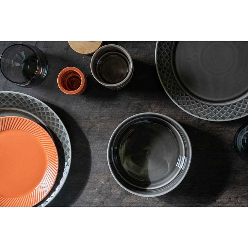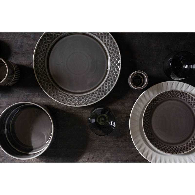 Plate with a characteristic relief pattern. The plate is part of the Coffee & More series, created by Sagaform in collaboration with designer Margot Barolo. The design is a flirtation with the direct, playful, straight-talking language of the 1970s. A variety of pieces, patterns and colours make up the series, which looks at its best in a wonderful mixture of everything! Microwave and dishwasher safe. Designer: Margot Barolo Size: O 270 mm Fabrics: Stoneware