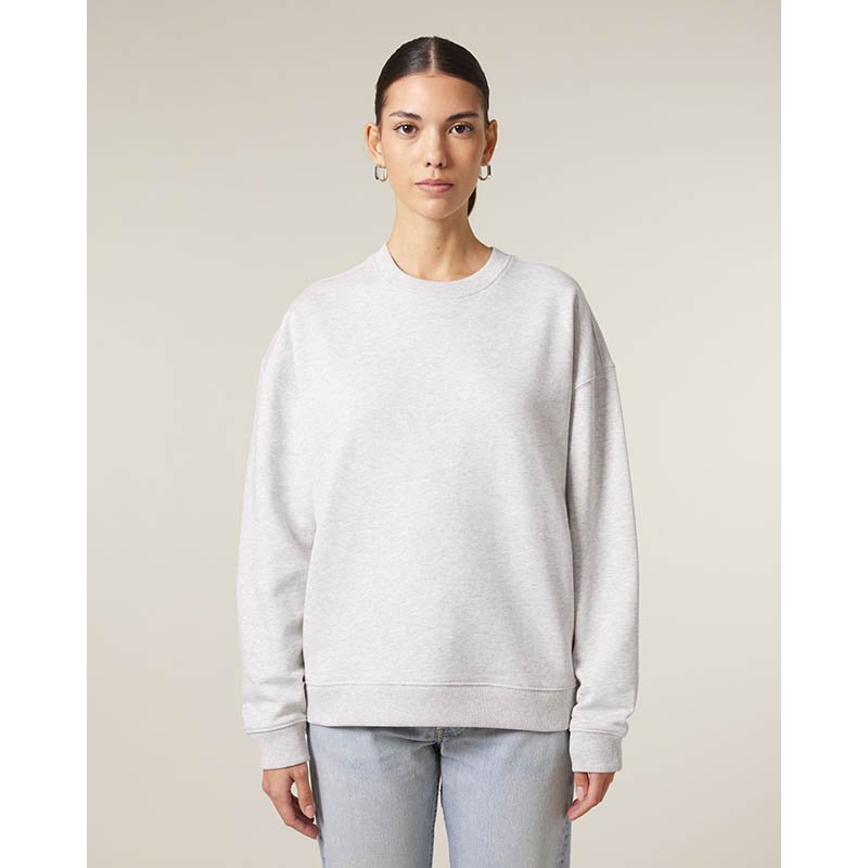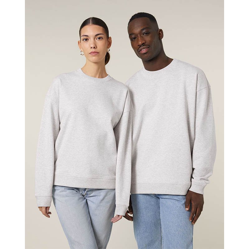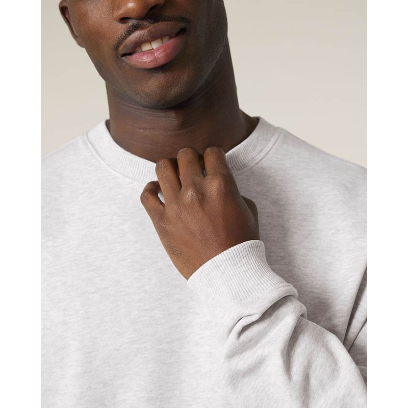 Mikina s okrúhlym výstrihom a česanou podšívkou. 2x2 rebrovanie na golieri, konci rukávov a spodnom leme. Ozdobné švy z overlockového úpletu v kombinácii tón v tóne. Moderný strih. Materiál: 80% organická bavlna 20% recyklovaný polyester. Gramáž: 280 g/m2. Certifikáty: GOTS, Fairtrade Cotton, Nordic Swan Ecolabel, Oeko-Tex