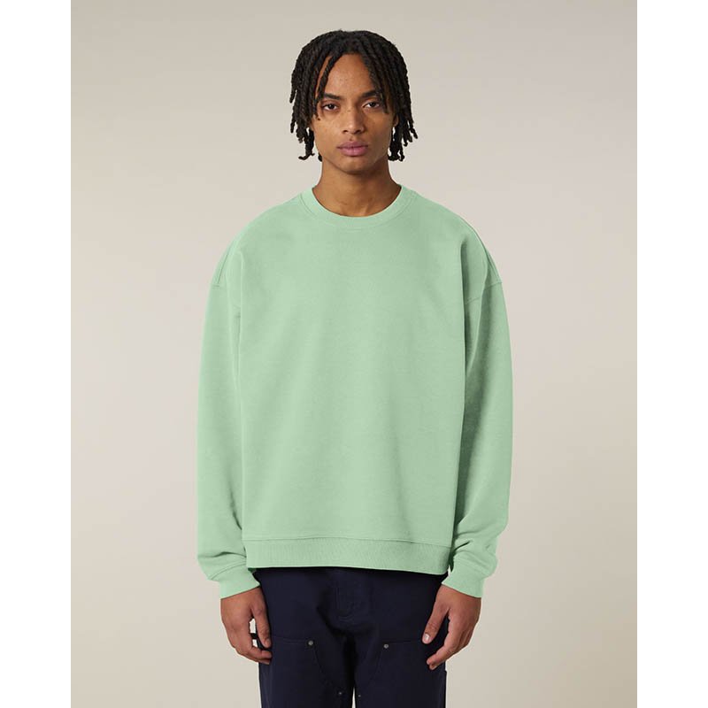 College crewneck sweater. · 100% terry cotton, enzyme wash, 250 g/m2 · 555 faded blue, 600 navy, 121 grey melange, 900 black · S–XXXL