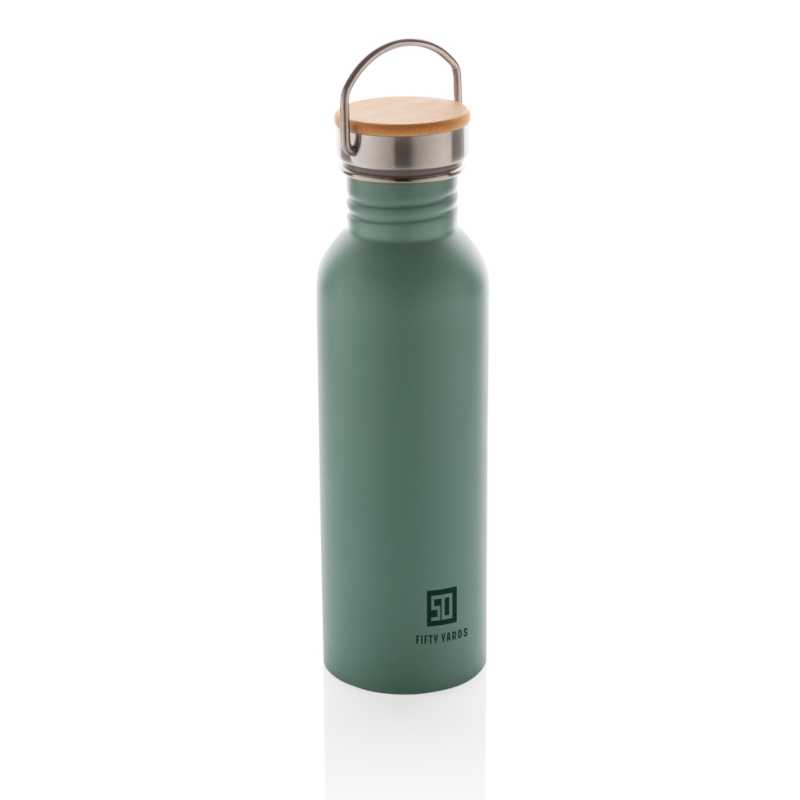 Stainless steel (s/s304) drinking bottle (700 ml) with bamboo screw cap.