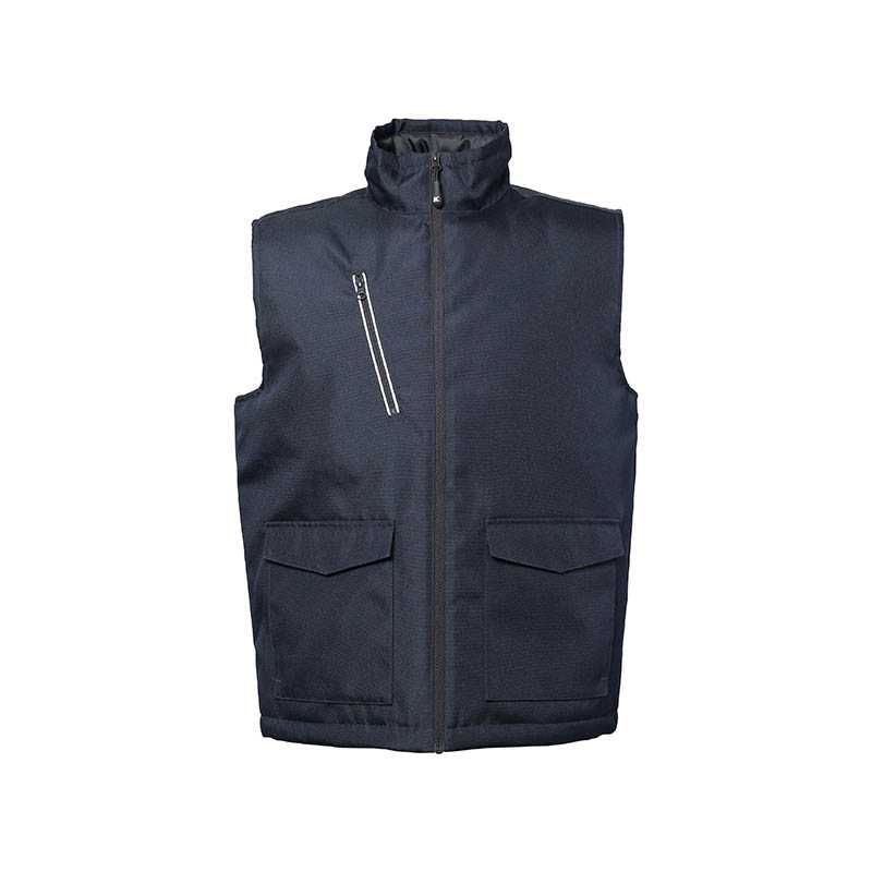 Padded 50D polyester vest with 210T polyester lining and 2 pockets with zip. Sizes: XS/S/M/L/XL/XXL