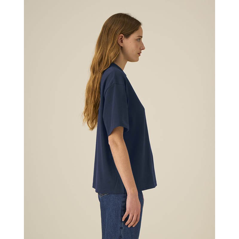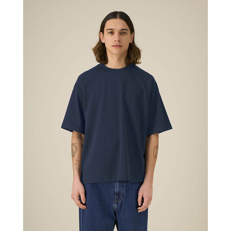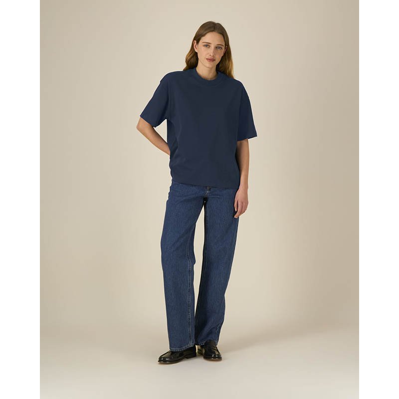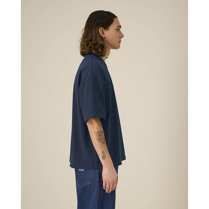 NOVINKA 2025. Set-in sleeve 1x1 rib at collar Double needs topstitches at sleeves cuffs and bottom hem Inside back neck tape in self fabric Slightly rougher fabric characteristic Slight shading on seams to give washed look. Garment dyed product, each ga
