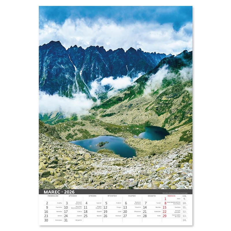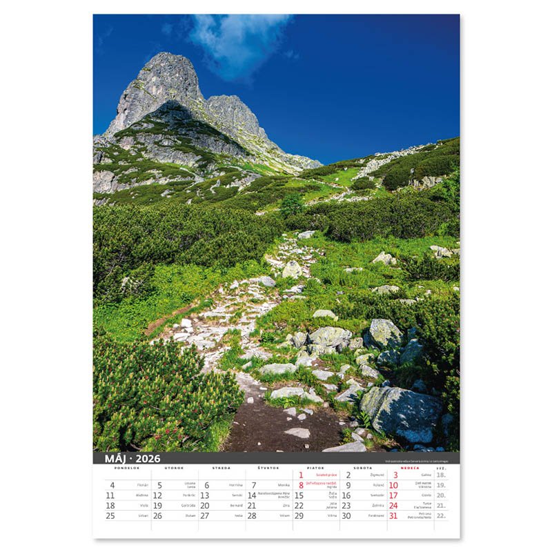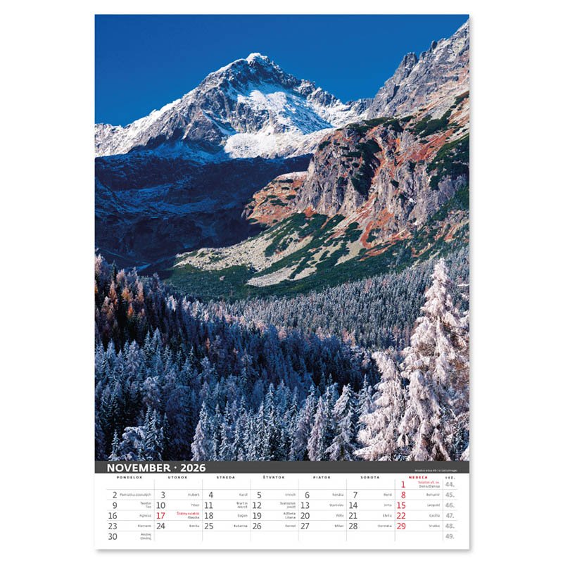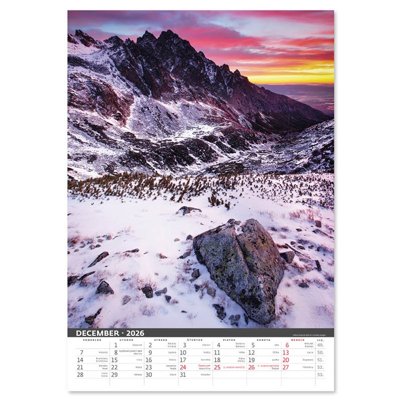 Kalendár Tatry 2026. Formát kalendára: 31,5 x 45 cm. Kalendárium: slovenské mesačné menné . Rozsah kalendára: 14 listov. Twinová väzba. Priestor na potlač: 31,5 x 7 cm. Autor: Boris Michaliček