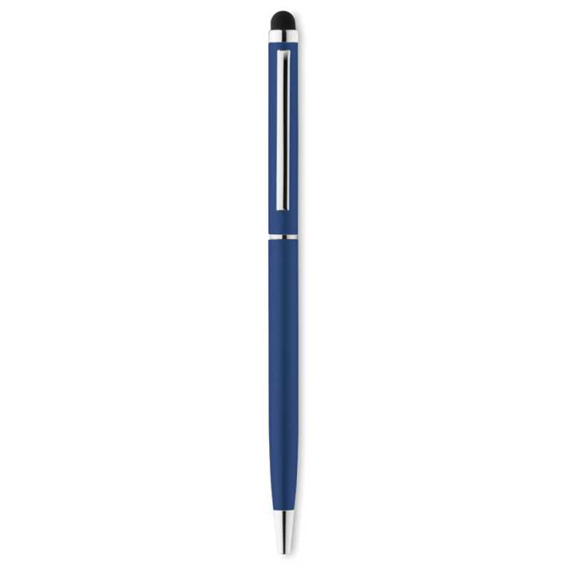 Aluminium ballpen with rubber tip for capacitive screens and twist action mechanism. Blue ink.