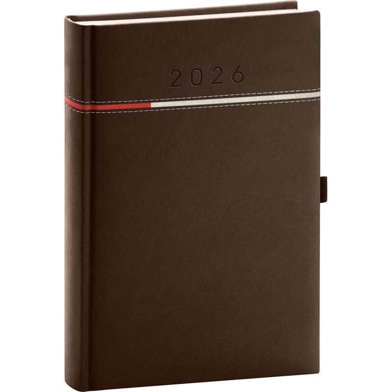 Denný diár Tomy 2026 v hnedo-červenej farbe. Klasický povrch imitujúci kožu, ktorý dopĺňa jemné prešitie. Na materiál je možné tlačiť a je vhodný pre všetky typy razieb. Denný rozvrh s česko-slovenským kalendáriom a doplnkovou angličtinou, nemčinou, maďarčinou a ruštinou.• kalendárium od decembra 2025• mesačný plánovací kalendár 2026 • mesačný plánovací kalendár 2027• ročný plánovací kalendár 2026–2027 • pracovný plánovací kalendár • sviatky Českej a Slovenskej republiky a