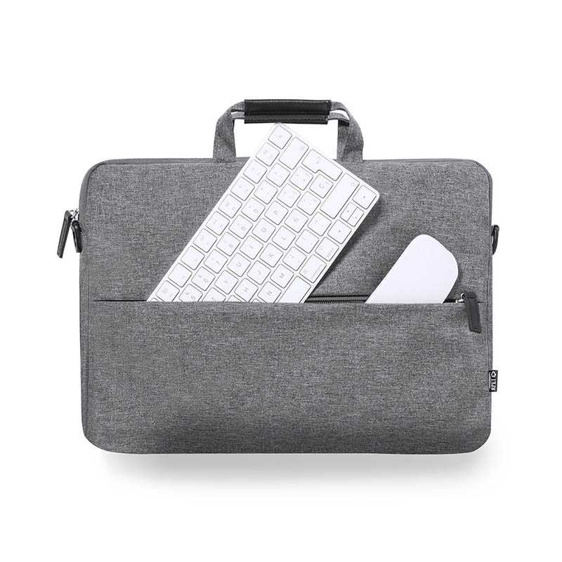 NOVINKA 2025. Document holder in nature line and in resistant 300D RPET melange effect, made from recycled plastic, in order to promote the reuse of plastic waste and contribute to the sustainability of the planet. With innovative, integrated laptop holder. Main and front pockets with zip closure. Inside with padded laptop pocket for up to 15 inches laptops and pocket for up to 10 inches tablets. Adjustable shoulder strap with reinforced carry handle. Resistance up to 6kg, with RPET emblem on outside label.