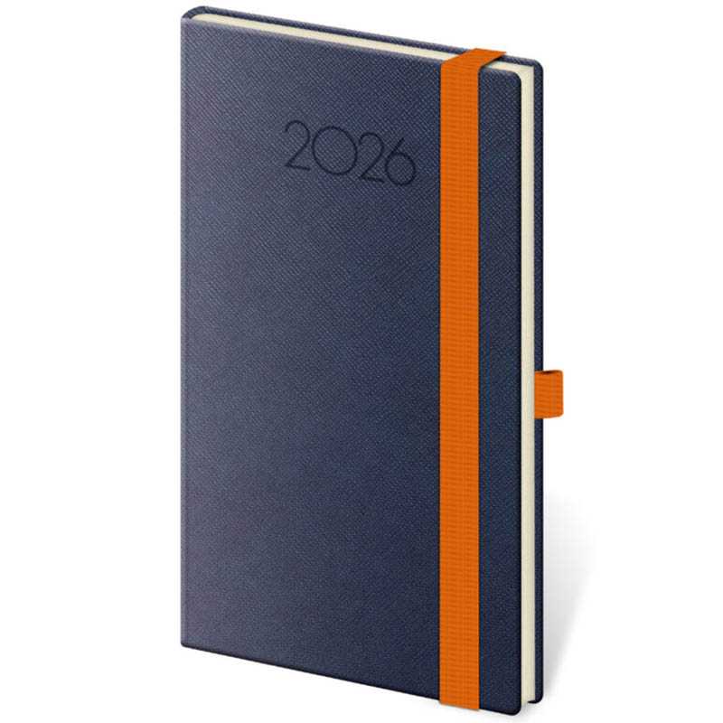 Nový rad diárov v modernom dizajne doplnenom o pevnú gumičku a pútko na pero. Týždenné rozloženie s česko-slovenským kalendáriom a doplnkovou angličtinou, nemčinou, maďarčinou a ruštinou.• kalendárium od decembra 2025• ročný plánovací kalendár 2026–2027 • pracovný plánovací kalendár • sviatky Českej a Slovenskej republiky a medzinárodné sviatky • rozšírený zoznam českých mien • miesto pre osobné údaje • perforované rožky• priestor pre poznámkyRozsah: 128 strán. Rozmer: 9 x 15,5 x 1 cm. Hmotnosť: 0,08. Papier: 70 g/m2 krémový papier. Väzba: tuhá knižná s gumičkou a pútkom na ceruzku. Kalendárium: 6 jazyčné (CZ, SK, GB, DE, HU, RU) .