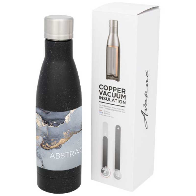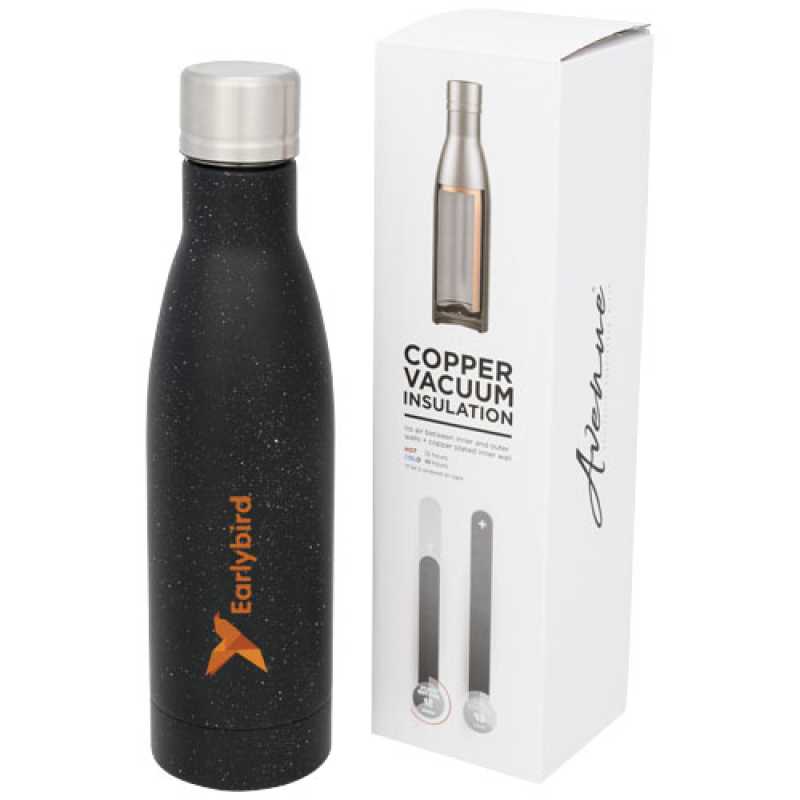 Udržte si nápoj horký po 12 hodin, nebo studený po 48 hodin s tečkovanou termoskou Vasa s měděnou vakuovou izolací. Dvojstěnná láhev vyrobená z nerezavějící oceli s vakuovou izolací a měděnými vnitřními stěnami zaručí, že váš nápoj zůstane horký nebo studený podle vašich potřeb. Láhev má trendy tečkovaný povrch. Bez BPA, testováno a schváleno podle německé legislativy pro bezpečnost potravin (LFGB) a na obsah ftalátů podle předpisů REACH. Objemová kapacita: 500 ml. Dodává se v dárkové krabičce.