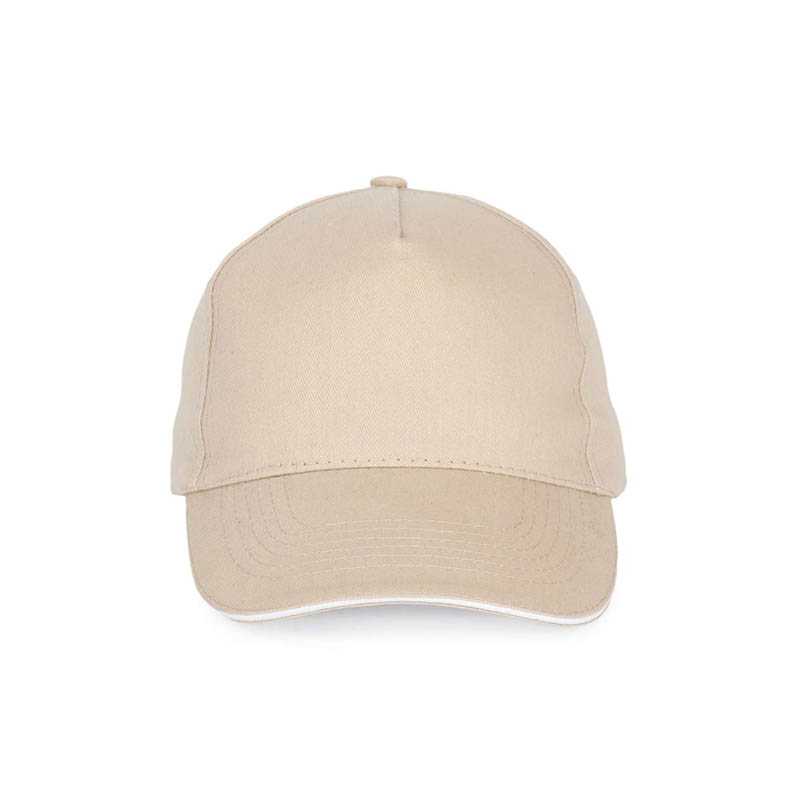 NOVINKA 2025. Nature line 5 panel cap in soft organic cotton of natural finishing. Adjustable velcro closure, with embroidered ventilation holes and material distinctive in label.