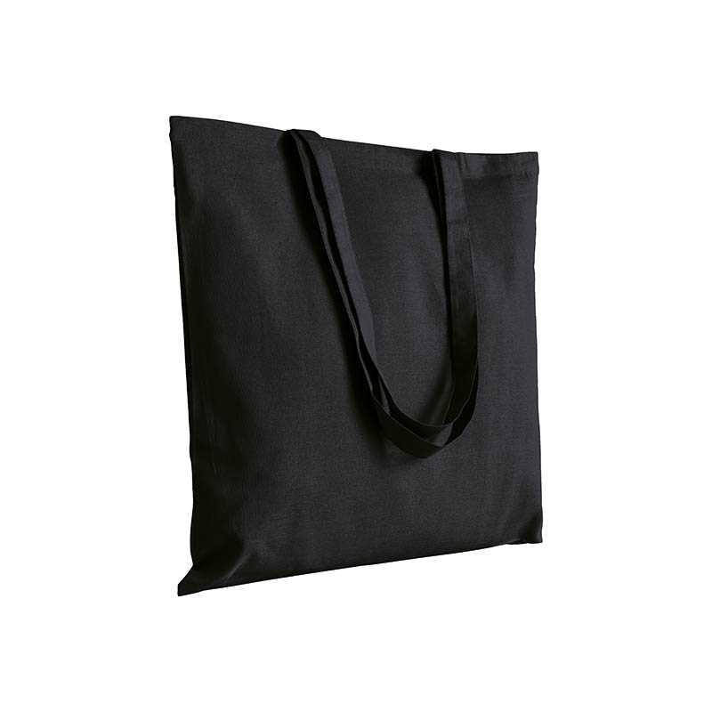 NOVINKA 2025. Nature line bag, made of 140g/m2 recycled cotton. Stitched finish and with long reinforced handles (70 x 2,5cm). Gusset on base and available in natural and black colours, with recycled cotton label on the outside. Resistance up to 6 kg in weight.GRS (Global Recycled Standard) certification available, guaranteeing the recycled origin of the material used to manufacture the product.