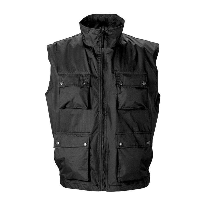 Polycotton multi-pocket vest, zipper closure, 5 front pockets