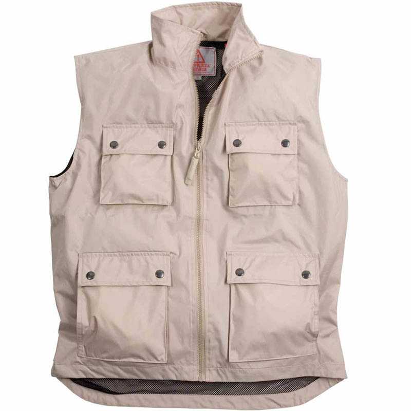 Polycotton multi-pocket vest, zipper closure, 5 front pockets