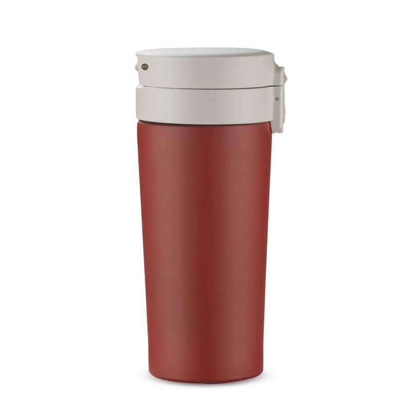 Termohrnček s objemom 500 ml s dvojitou stenou z vylepšenej nerezovej ocele 18/8 a pogumovaným dnom, netečúci. Vákuum medzi 2 stenami poskytuje hrnčeku dokonalé tepelno izolačné vlastnosti. Otváranie na tlačidlo a poistku zaisťuje dvojitú ochranu proti ne