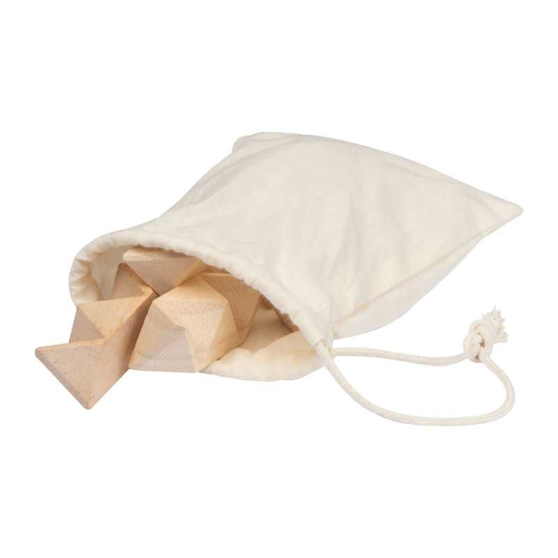 Dřevěný kostičkový hlavolam v bavlněném váčku. Reklamní potisk nelze provést na dílky hlavolamu.