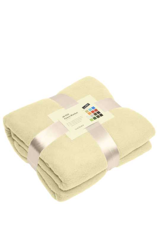 Polyester flannel fleece (260 gr/m2) blanket. The blanket is folded and tied with a ribbon.