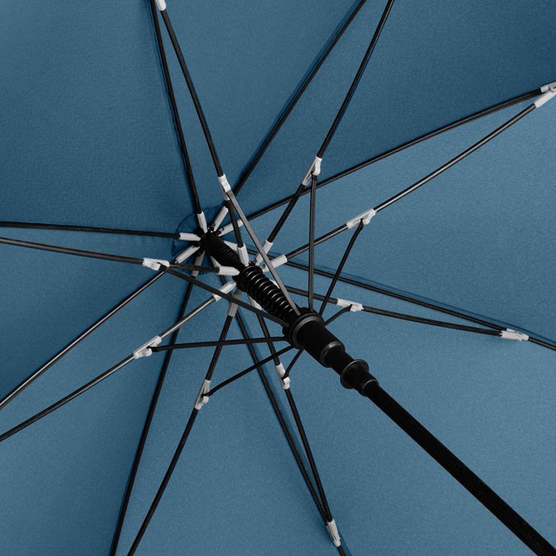 Convenient automatic function for a quick opening, high-quality Windproof PLUS system for maximum frame flexibility in stormy conditions, flexible fibreglass ribs, water and dirt repellent cover properties through original Teflon™ fabric protector, dull silver gear stick handle with promotional labelling option (f. e. shifting gate), handle with special finish parts and integrated push button, higher corrosion protection due to galvanized steel shaft. Also available as mini umbrella (art. 5655).