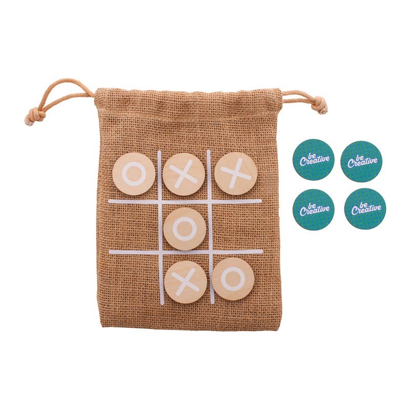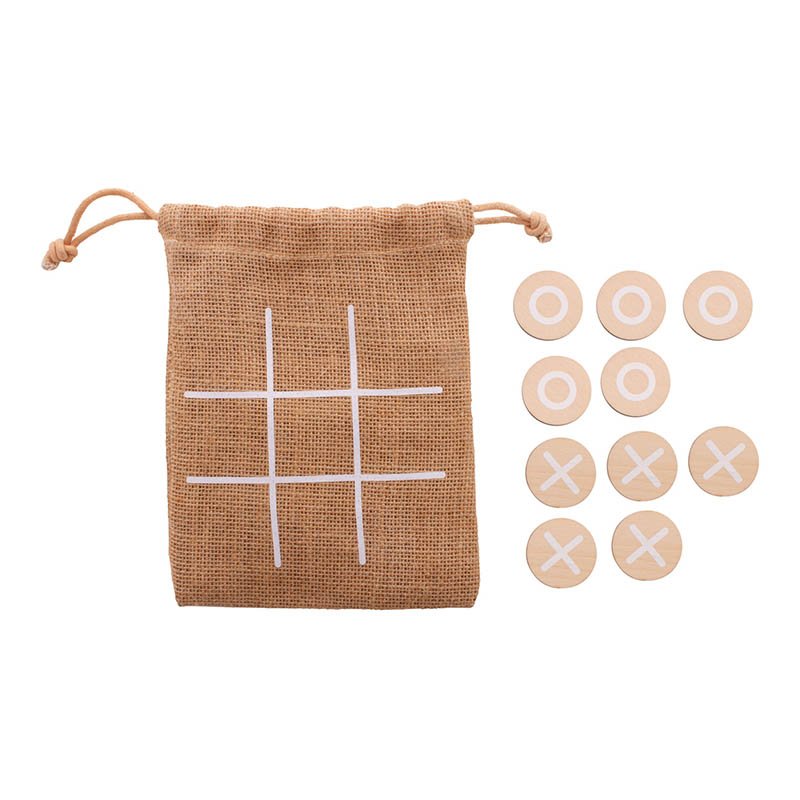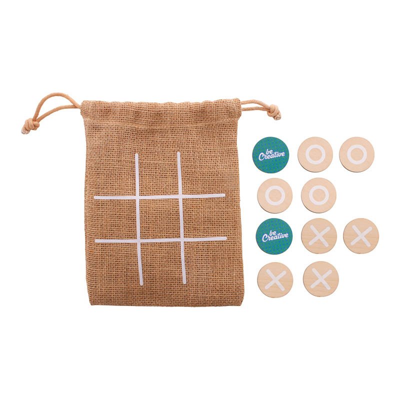 Hra piškvorky z brezovej preglejky s 10 žetónmi a jutovým puzdrom. Cena zahŕňa identickú plnofarebnú potlač na zadnej strane všetkých žetónov, nezahŕňa tlačovú prípravu. Min. mn.: 100 ks.
