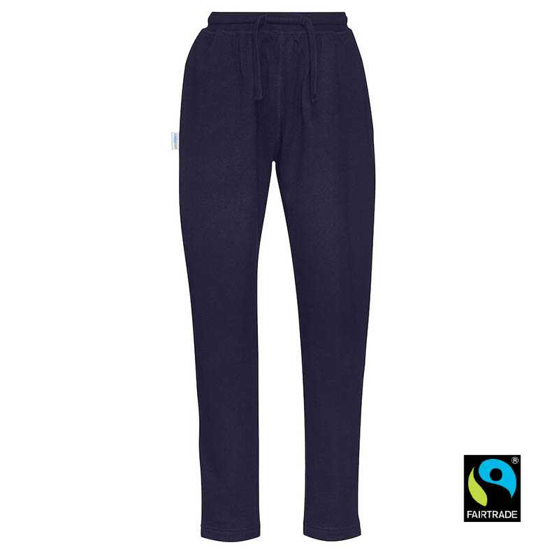 Tepláky s česanou podšívkou. Široká šnúrka v páse, dve bočné vrecká. Zadné vrecko na pánskej verzii. Rovný strih. Materiál: 80% organická bavlna 20% recyklovaný polyester. Gramáž: 280 g/m2. Certifikáty: GOTS, Fairtrade Cotton, Nordic Swan Ecolabel, Oeko-Tex