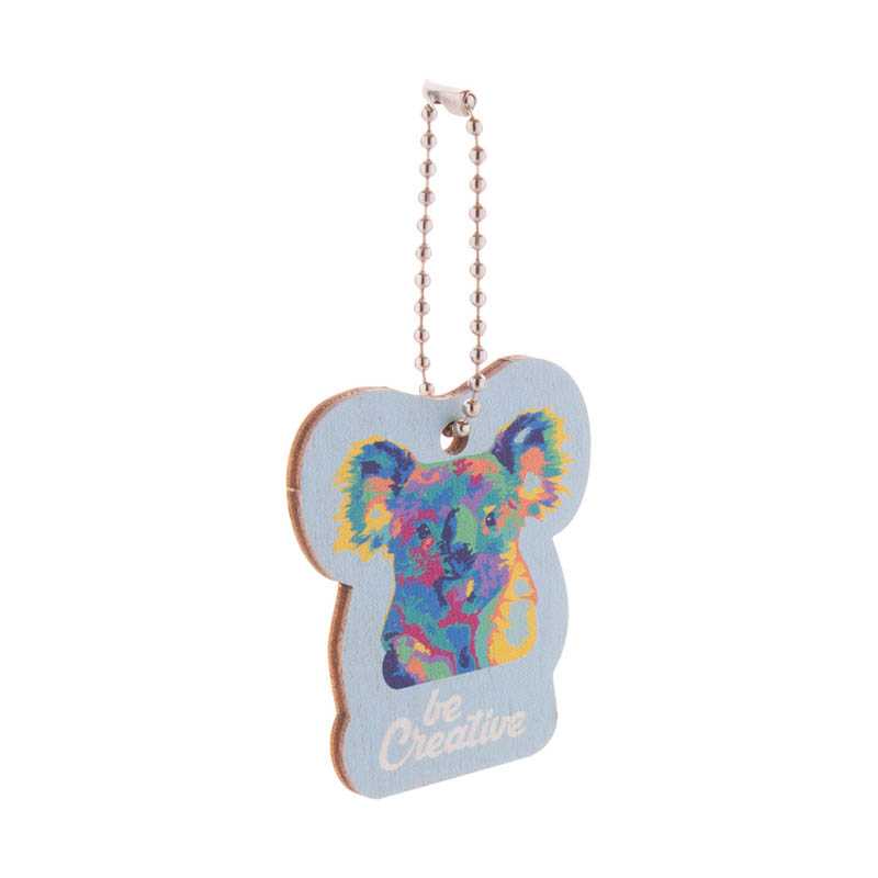 Prívesok na kľúče vyrobený na zákazku z brezovej preglejky s plnofarebnou potlačou a kovovou retiazkou. Vyrába sa v tvare na zákazku - maximálny rozmer: 45x45 mm. Cena je vrátane UV LED tlače na jednej strane, nezahŕňa tlačovú prípravu. Min. mn.: 200 ks.