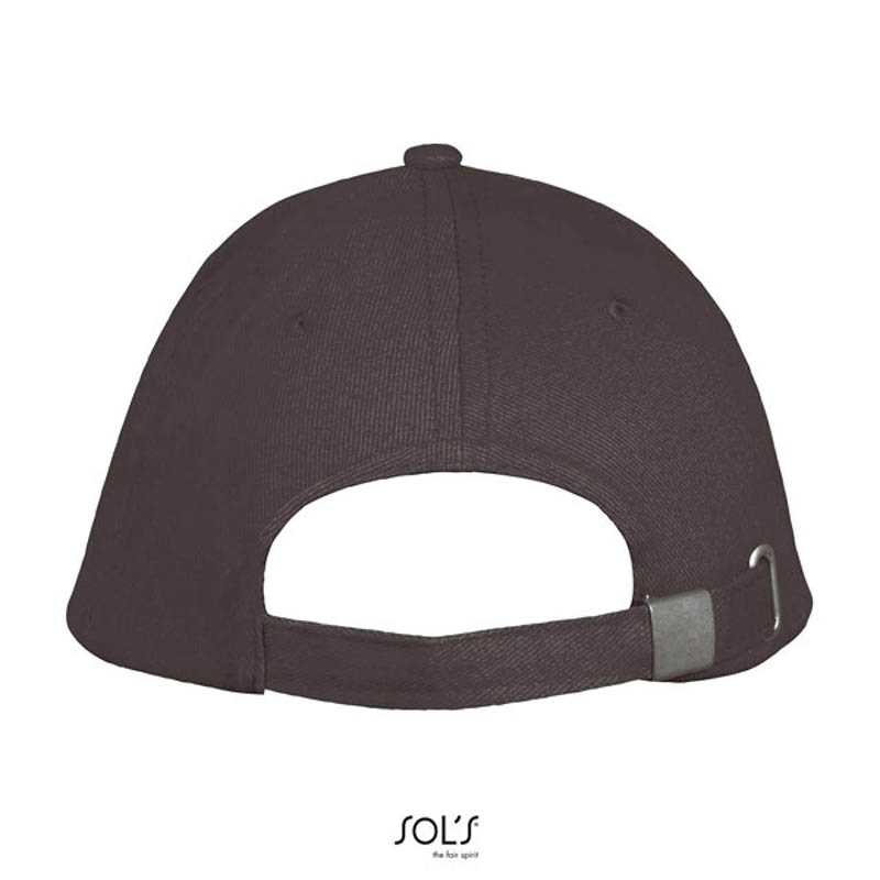 Baseballová čiapka zo 100% brúsenej bavlny so 6 panelmi a zapínaním na kovovú pracku.