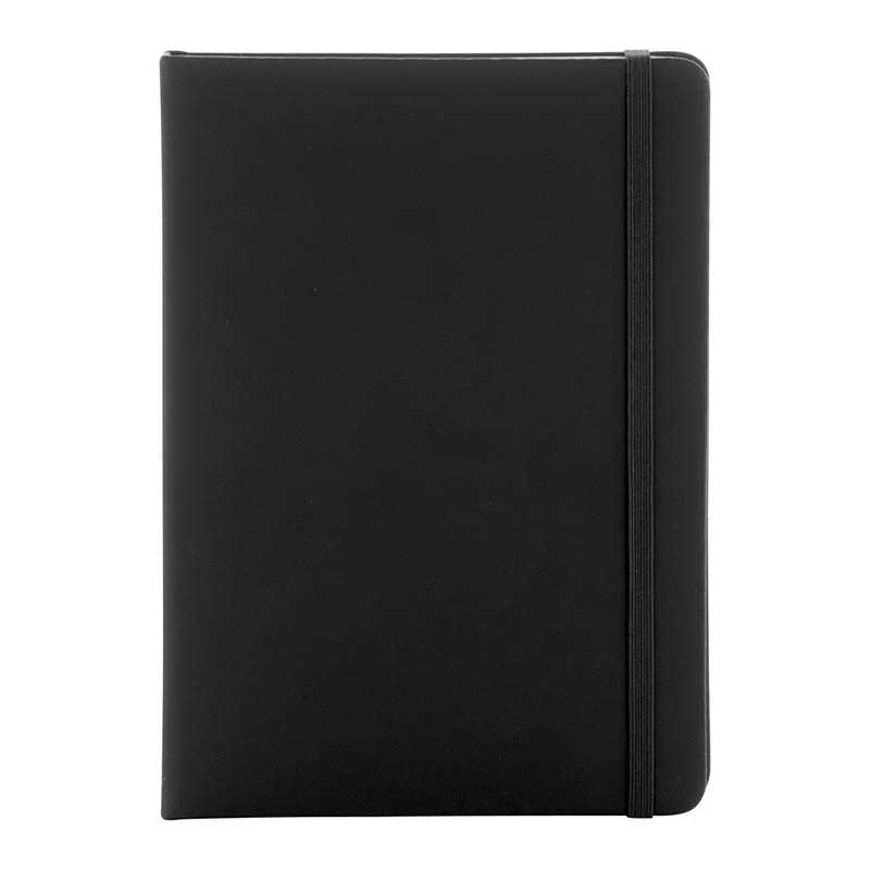 RPET and PU Notebook (A5) with elastic to keep closed and a ribbon bookmark. Notebook has 80 lined pages of 70gsm paper.