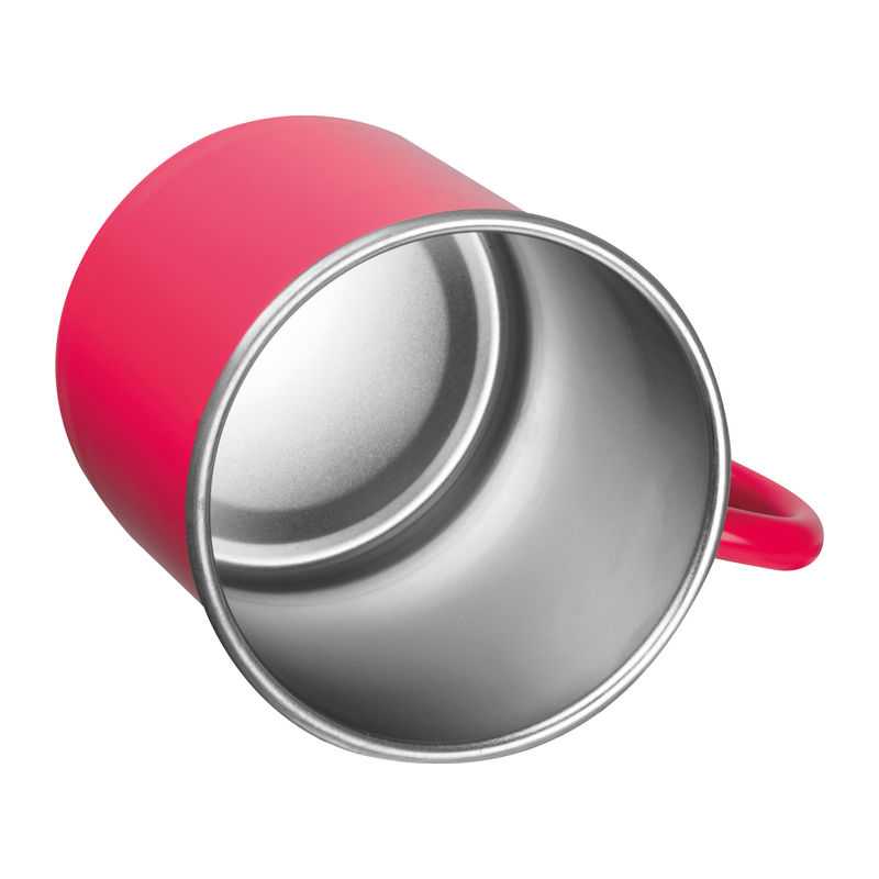 Stainless steel (s/s304) mug (300 ml). Inside is 304 stainless steel, outside is 201 stainless steel. Individually packaged in a cardboard box.