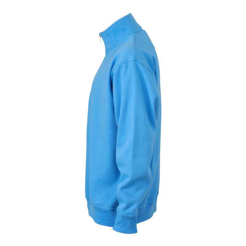 Sweatshirt with collar halfzip. 2x2 rib ending at sleeves and bottom hem. Material: 60% Poliester, 40% Cotton Colors: 400 red, 600 navy, 632 ocean blue, 728 fresh green, 900 black, 935 steel grey, 100 white, 120 grey melange Size: XS–5XL