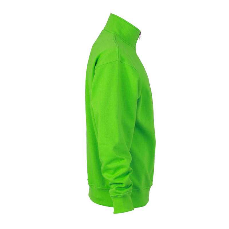 Sweatshirt with collar halfzip. 2x2 rib ending at sleeves and bottom hem. Material: 60% Poliester, 40% Cotton Colors: 400 red, 600 navy, 632 ocean blue, 728 fresh green, 900 black, 935 steel grey, 100 white, 120 grey melange Size: XS–5XL