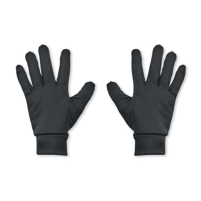 Hmatové sportovní rukavice z polyesteru pro chytré telefony. Dva prsty s dotykovou funkcí. S protiskluzovými tečkami z PVC na dlani a prstech.