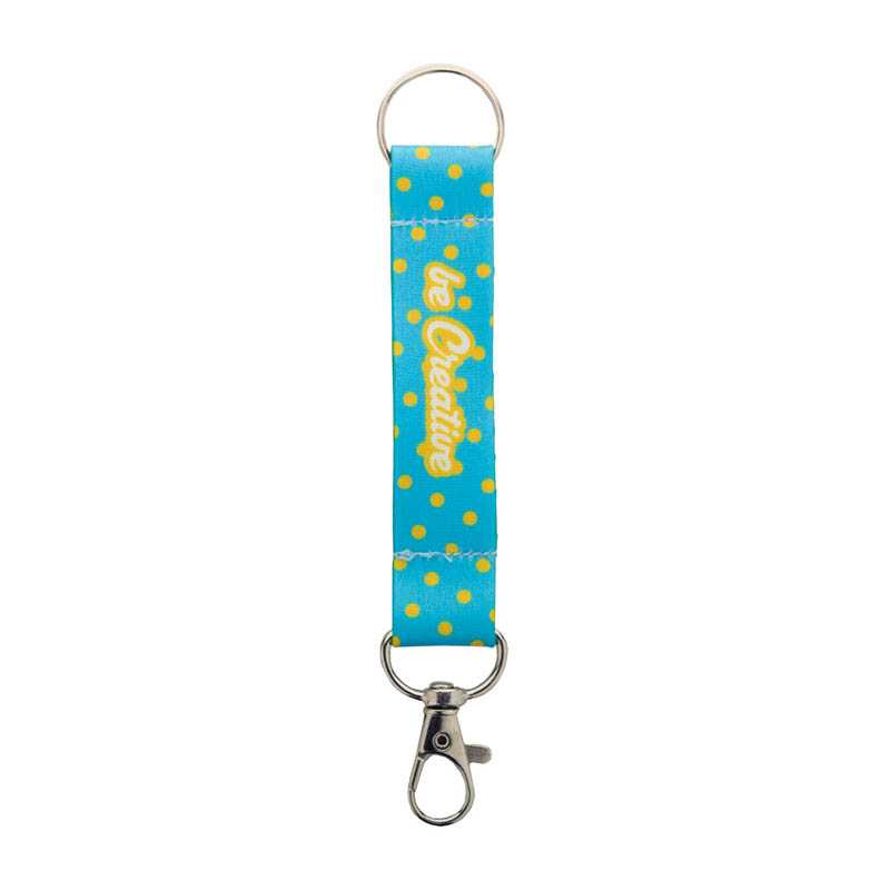 Na zákazku vyrobený RPET polyesterový mini prívesok na kľúče so sublimačnou tlačenou grafikou na oboch stranách, nezahŕňa tlačovú prípravu. S kovovou karabínou a krúžkom. Min. mn.: 100 ks.